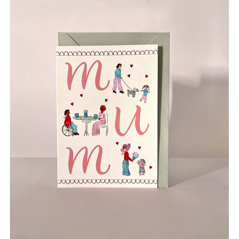 Mum greeting card, celebrate a Birthday with these cute illustrations. This inclusive hand drawn/painted by store owner Emily using promarker and coloured pencil. Printed in the UK by an eco-friendly manufacturer.
