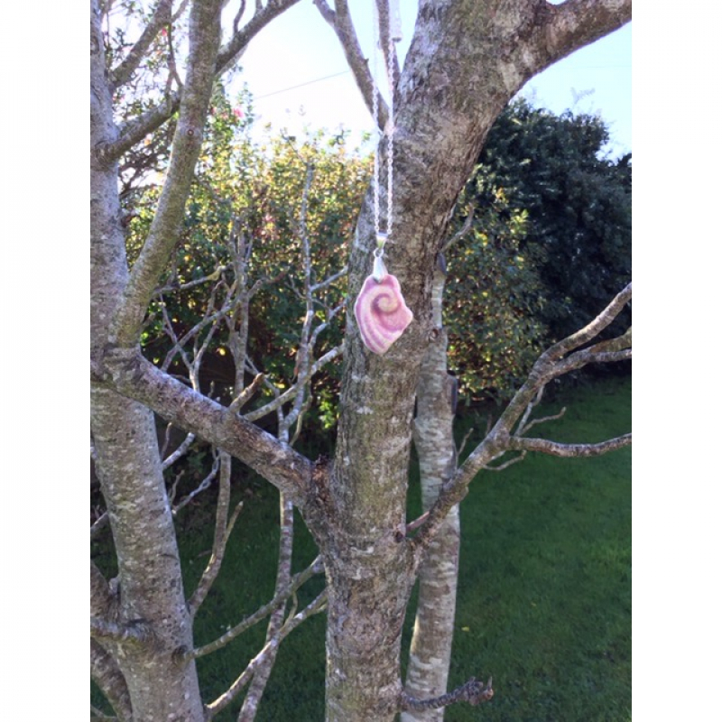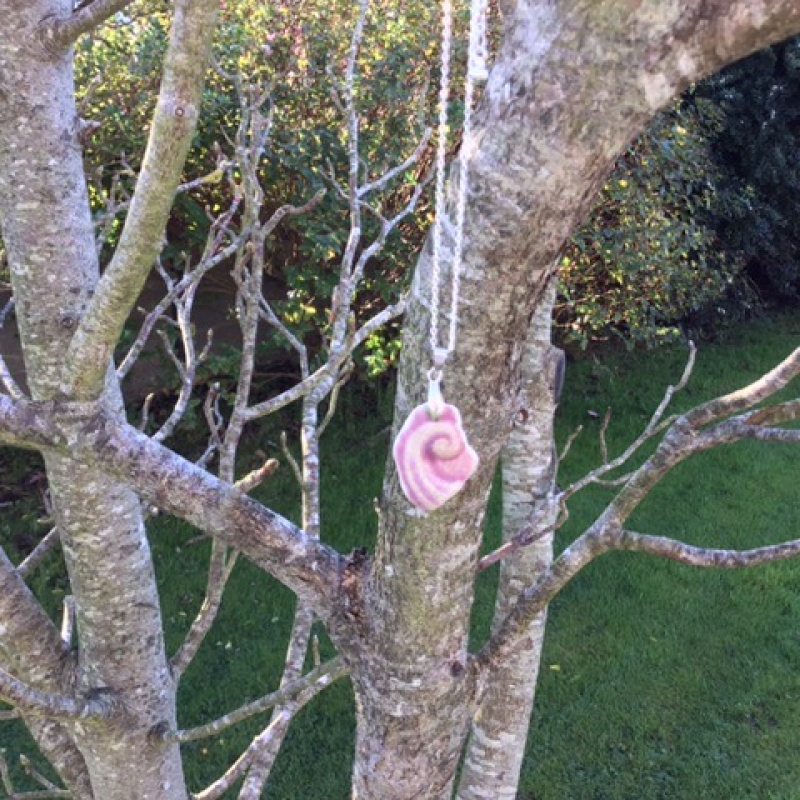 An unique 2 sided pink piece of washed ashore vintage pottery pendant.It was collected on the beautiful shore of Anglesey, North Wales. It is attached to an 18" silver plated chain with a 3” extension chain.They have been tumbling around in the sea for many years. It has not been modified. It is as I found it on the shore. I have cleaned and drilled a hole to attach to a bail on a chain.It is a very unique piece of pottery.