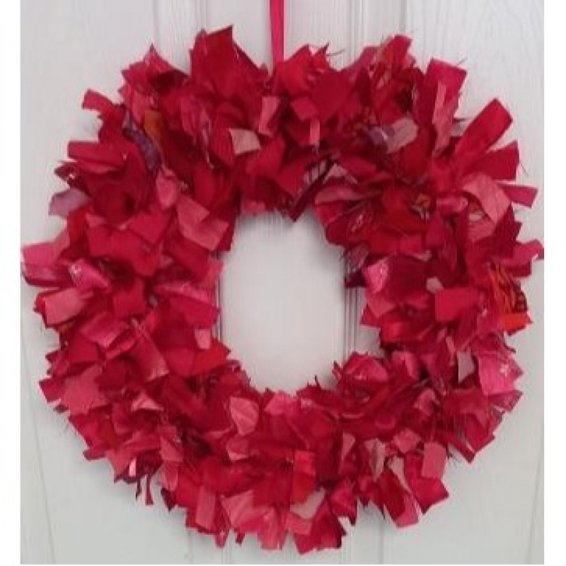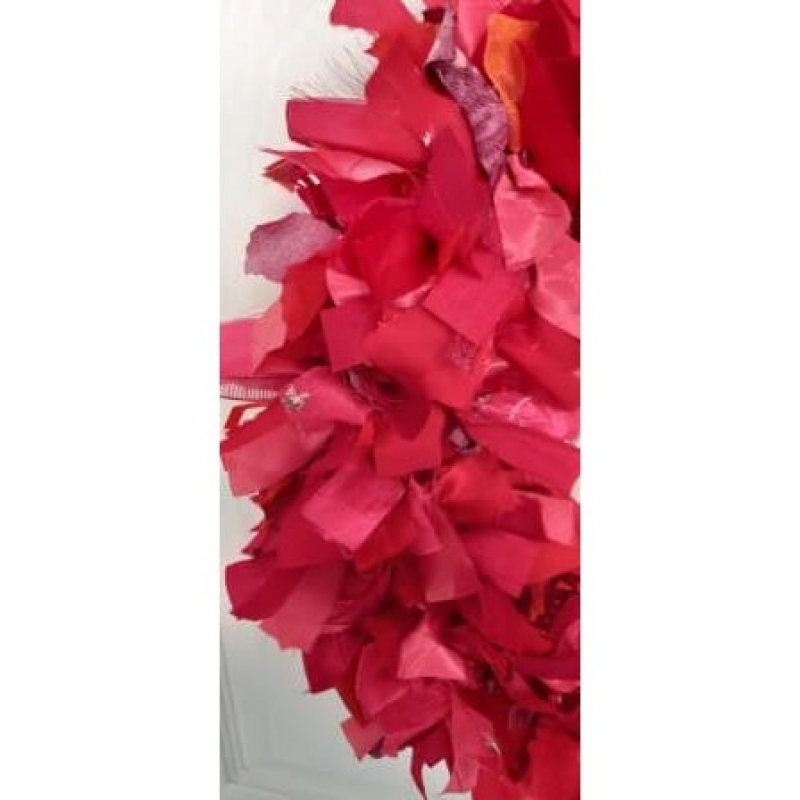 Bright shades of orange and red make this handmade round rag wreath the perfect house warming gift for one you love. Or perhaps keep it for yourself to add something new to your home’s interior.