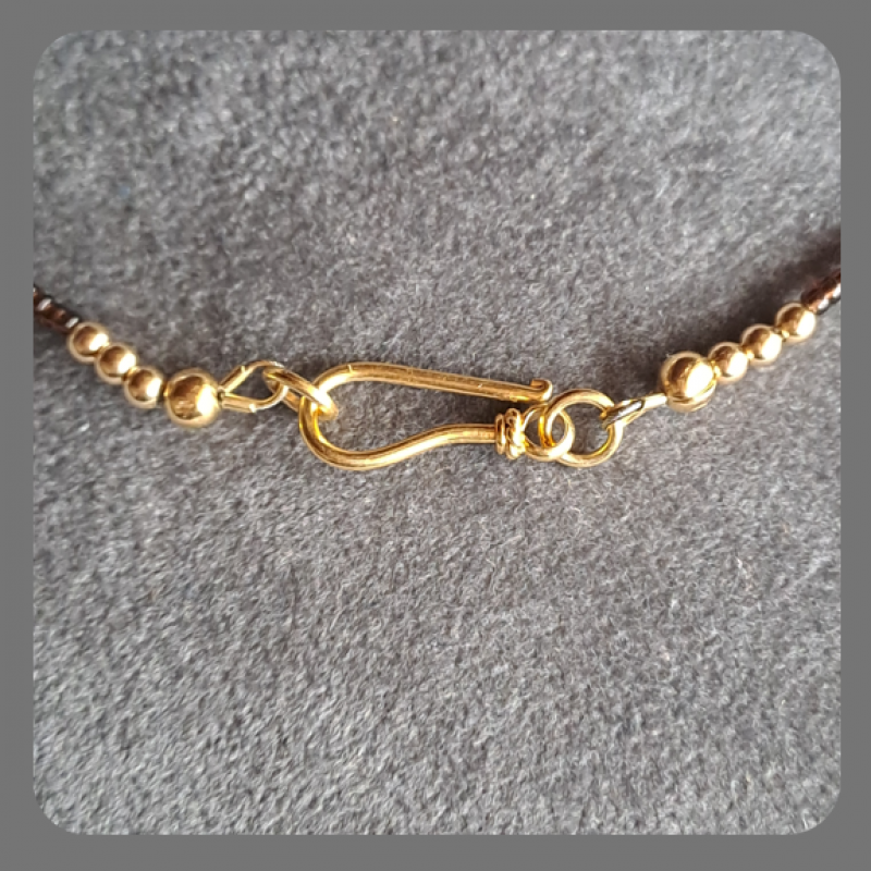 It has been made with 3mm vermeil (gold plated sterling silver) beads and 3mm faceted Peridot beads.