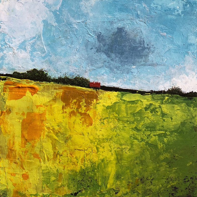 Red House and Summer Meadow - Original Acrylic Painting