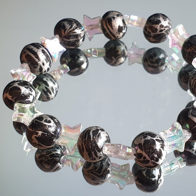 Bracelet made with acrylic star beads and upcycled wooden beads