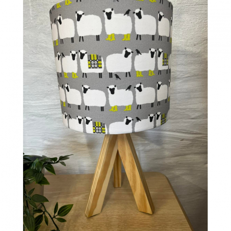 Lampshade in a Sheep in Welsh Blanket print.