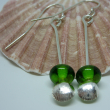Dainty fine silver shell and recycled glass bead dangly earrings. Perfect for summer - or anytime!