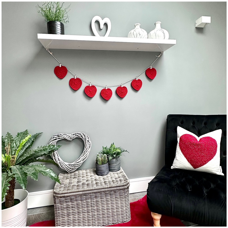 The garland consists of 8 heart elements and measures approximately 1.25 metres in length.